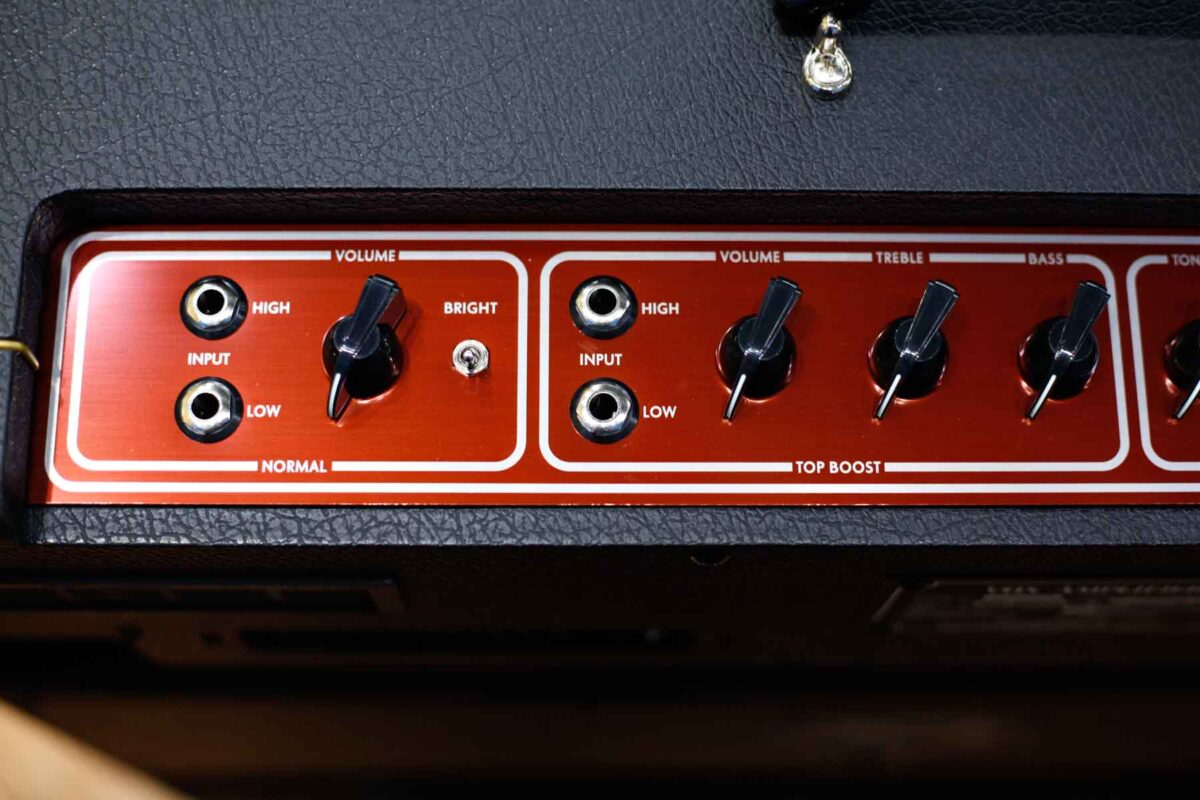 VOXのハンドワイヤードシリーズAC30HWR2Xも同じ様に1963-1964年のAC30をベースにデザインされています。この時代のAC30の特徴を再現するにはノーマルチェンネルを選択し、BRIGHT SWをOFFにしてMASTER VOLUMEを時計3時方向にセットしてTONE CUTは時計9時方向程度にセットしてみてください。そして好みの音量/ゲインになるまでNORMAL VOLUMEを上げて頂ければそのフラットで音楽的な真空管サウンドを楽しめると思います。ハムバッカーやP90など、使用するギターによってはBRIGHT SWをONにしてもよろしいかと思います。