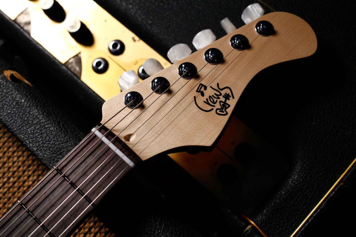 ヘッドのロゴにはCrews手書き風ロゴを配置。ペグはGOTOH MG-Tを採用。