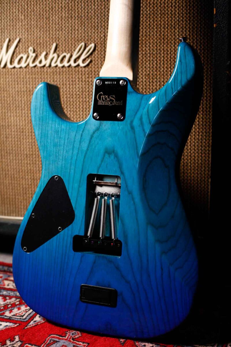 ピックアップはJames Tyler JST5500(フロント&センター)、Crews Maniac Sound Custom Winding Humbucker(リア)を搭載。