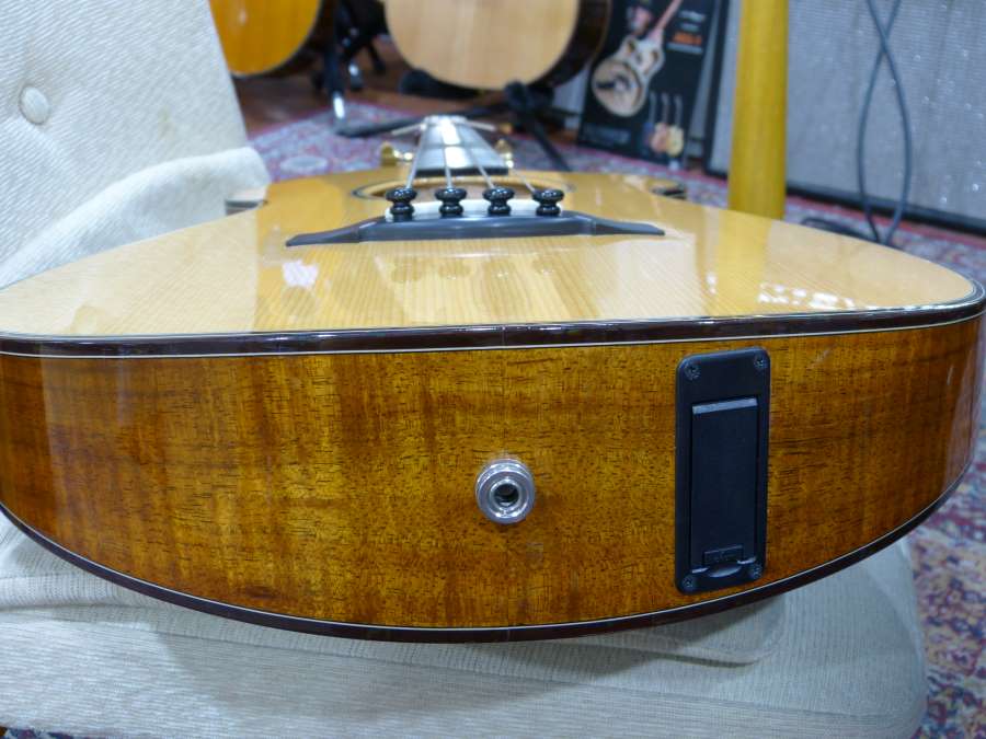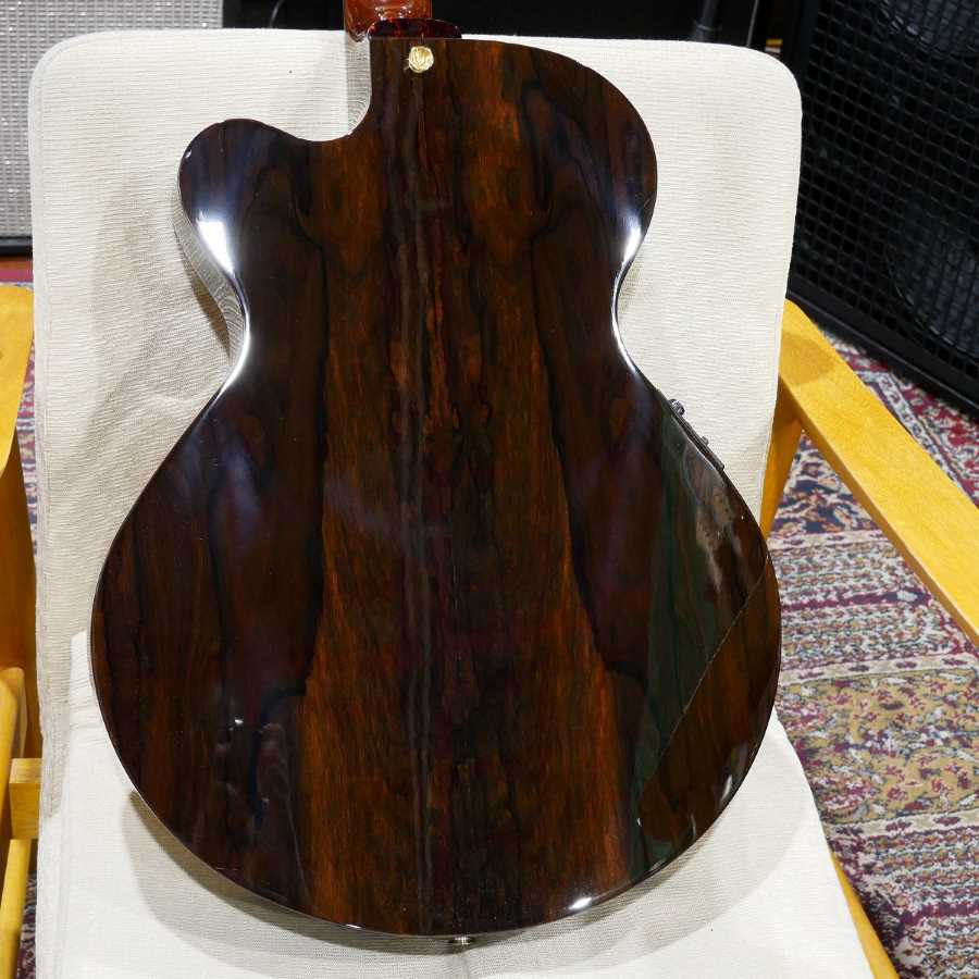 通常のローズウッドに対して、硬質な材のジリコーテ、そしてハイミッドに特徴のあるコア材というのと、私自体の音がちょっとハイレンジ強めにシフトしてしまうのもあり、ちょっと分かり辛いかもしれないですが…。(ここにマホガニーサイド&バック仕様とかがあったらちょっと面白かったかも?っと思いつつ…)
