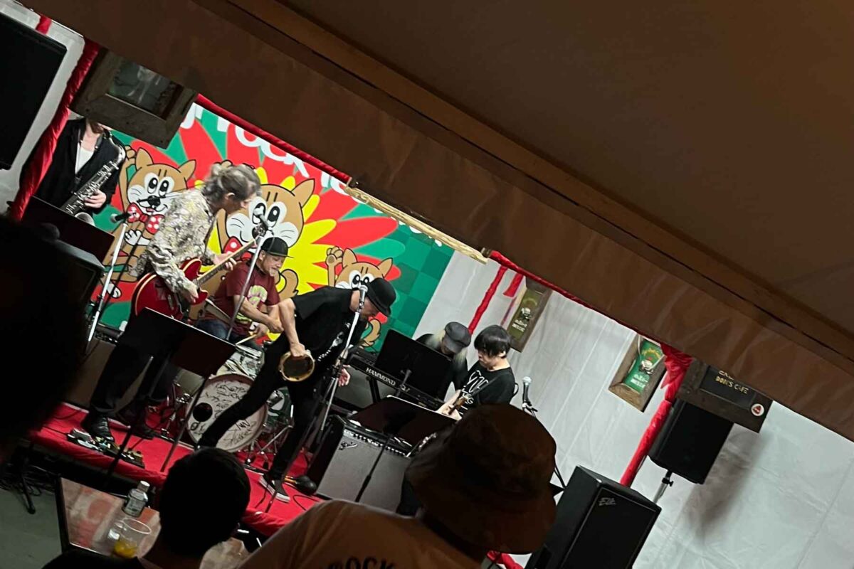バンドメンバーは苗場音楽突撃隊のメンバーが中心になっており、dipのヤマジカズヒデさん、THE ROOSTERSの花田裕之さん&池畑淳二さんなど とても豪華な顔触れ。タイミングによってはBRAHMANのTOSHI-LOWさんやMO’SOME TONEBENDERの百々さんなども飛び入り参加されていて、非常に盛り上がるスポットです。