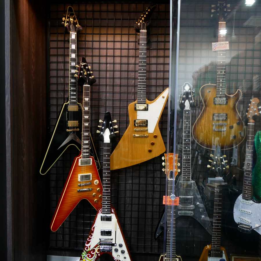 他にもルックスはVだけど、音はしっかりLP Customの音がする、只者ではないV Custom。あの有名な柄をハンドペイントで再現したモデルとマニアックなラインナップもずらりと。