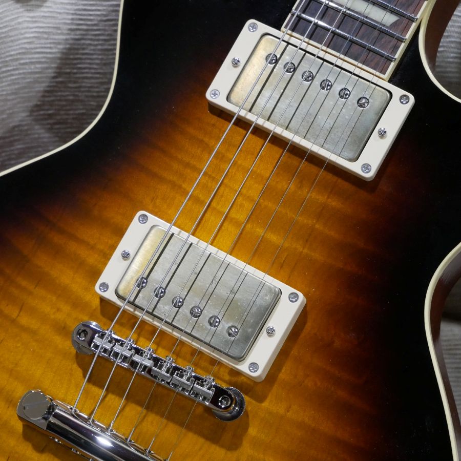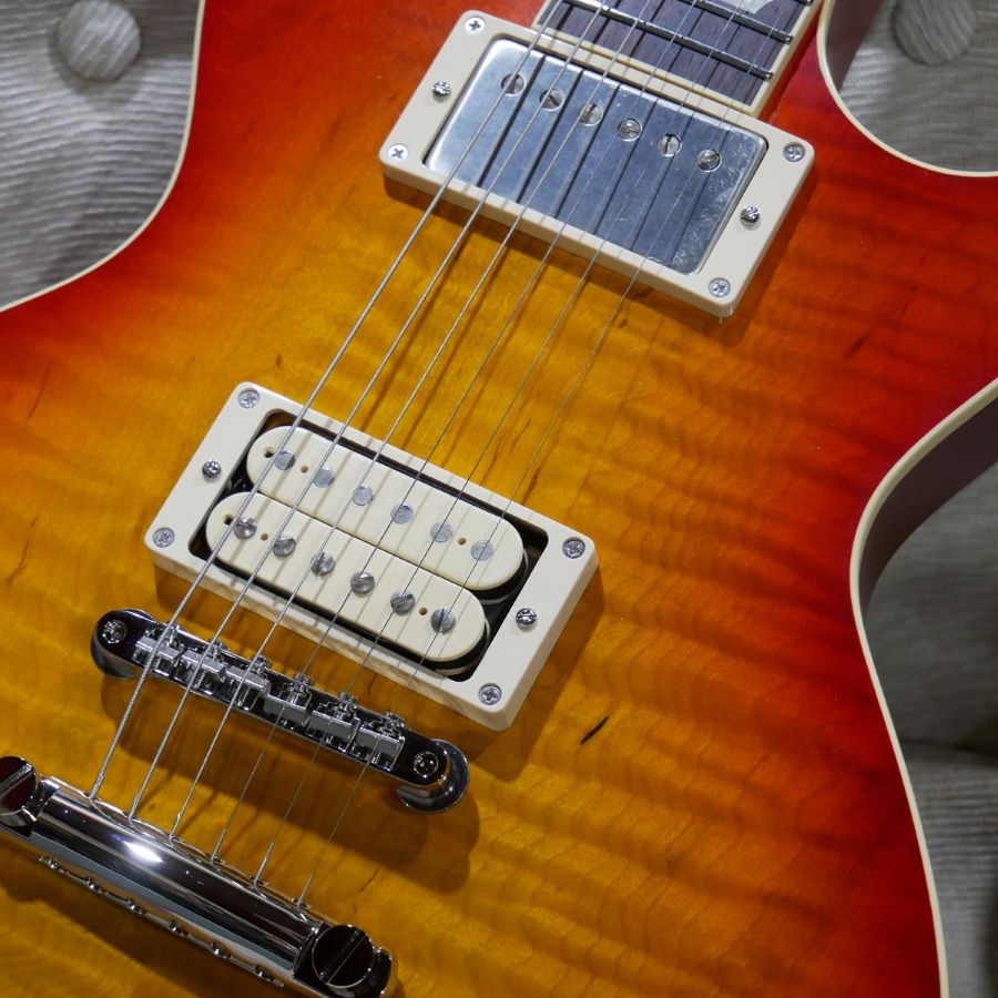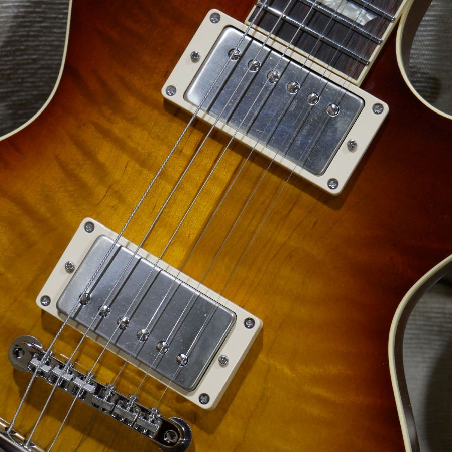 どのピックアップもPAFのサウンドを狙っていますので、どれももちろんバーストなサウンドであるのですが、それぞれのピックアップでギタリストやバンドが浮かんでくるのが面白いところであり、実際に弾いていて、そのイメージに自然と連れて行ってくれる部分がありますので、どのモデルを弾いていても共通に楽しい一面があります。
