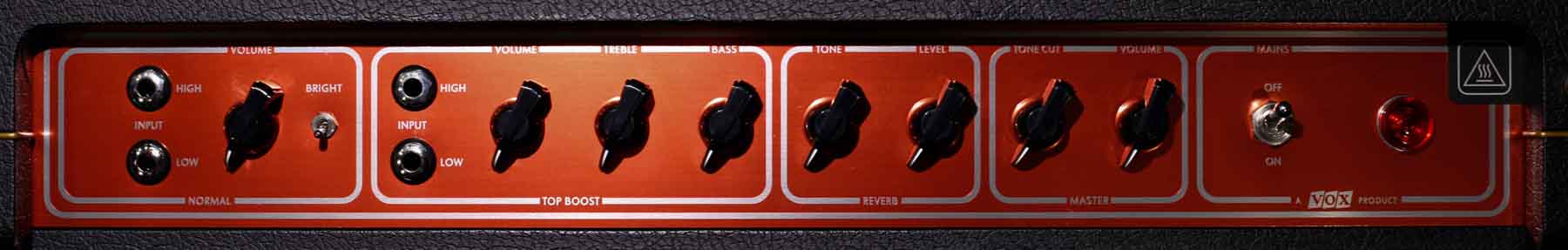 Class A EL84パワー管×4本使用したプッシュプル方式+GZ34管整流回路を採用。さらに12AT7を採用したチューブリヴァーブを備えています。スピーカーは2基搭載。NORMAL CHとTOP BOOST CHの2チャンネル仕様(それぞれにHIGH/LOW 2INPUT)となります。説明不要の歴史的アンプAC30のヴィンテージ・モダンヴァージョン。今回のHWRシリーズの全ての基準となるモデルになります。スピーカー2発はやはり音の広がり方が違い、ジャーンとコードをかき鳴らした時の「これぞVOXの王道ロックサウンド!」を感じることができ、その開放感はたまりません。さらにリバーブを使用した際の”浸れるリバーブ感”は感動的と言っていいほどです。