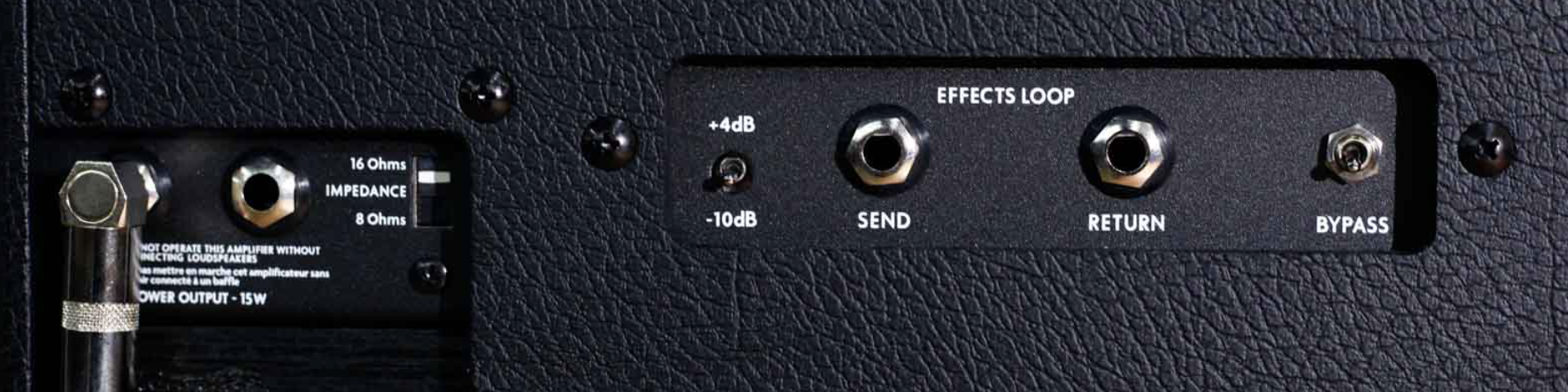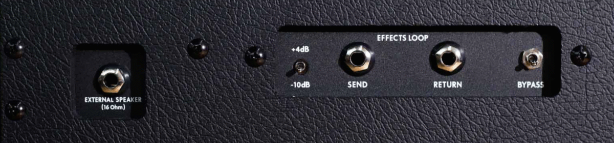 EXTERNAL SPEAKERのみ。出力した信号を内部スピーカーに戻すことはできないので、パワーアンプ部と内蔵スピーカーの間にアッテネータを接続することはできませんが、外部スピーカーを用いればアッテネーターの使用も可能です。もしくはダミーロード/ロードボックスで完全に消音状態にしライン出力だけを得て、外部のスピーカーシミュレーターを使うなどの活用方法があります。