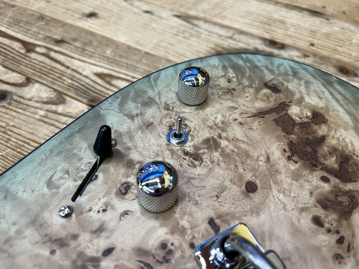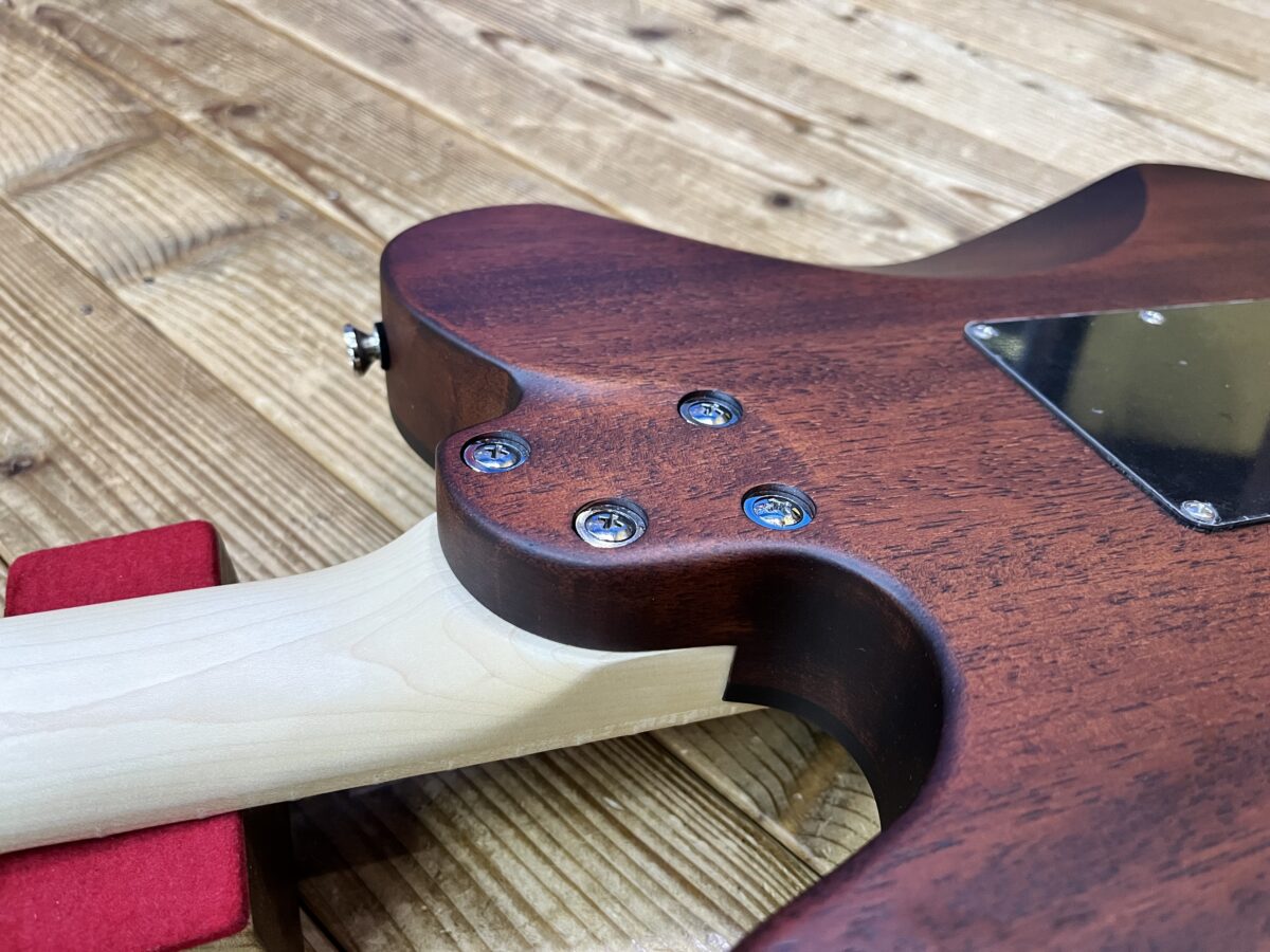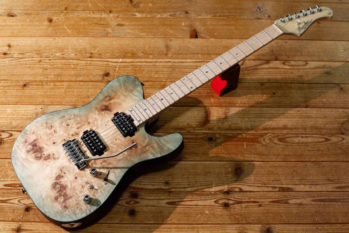 ボディマテリアルは、Burl Poplar / Nyatoh(マホガニーに近い特性を持つ材)で「温かさ」と「重厚感」のある響きに加え、メイプル指板、ボルトオン仕様による「明瞭さ」も併せ持っています。(ルックスも良い👍)