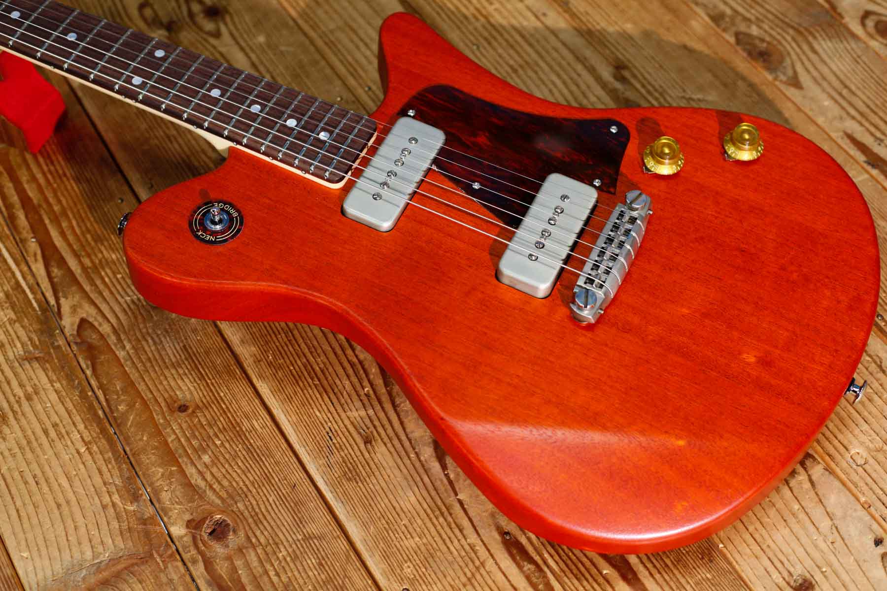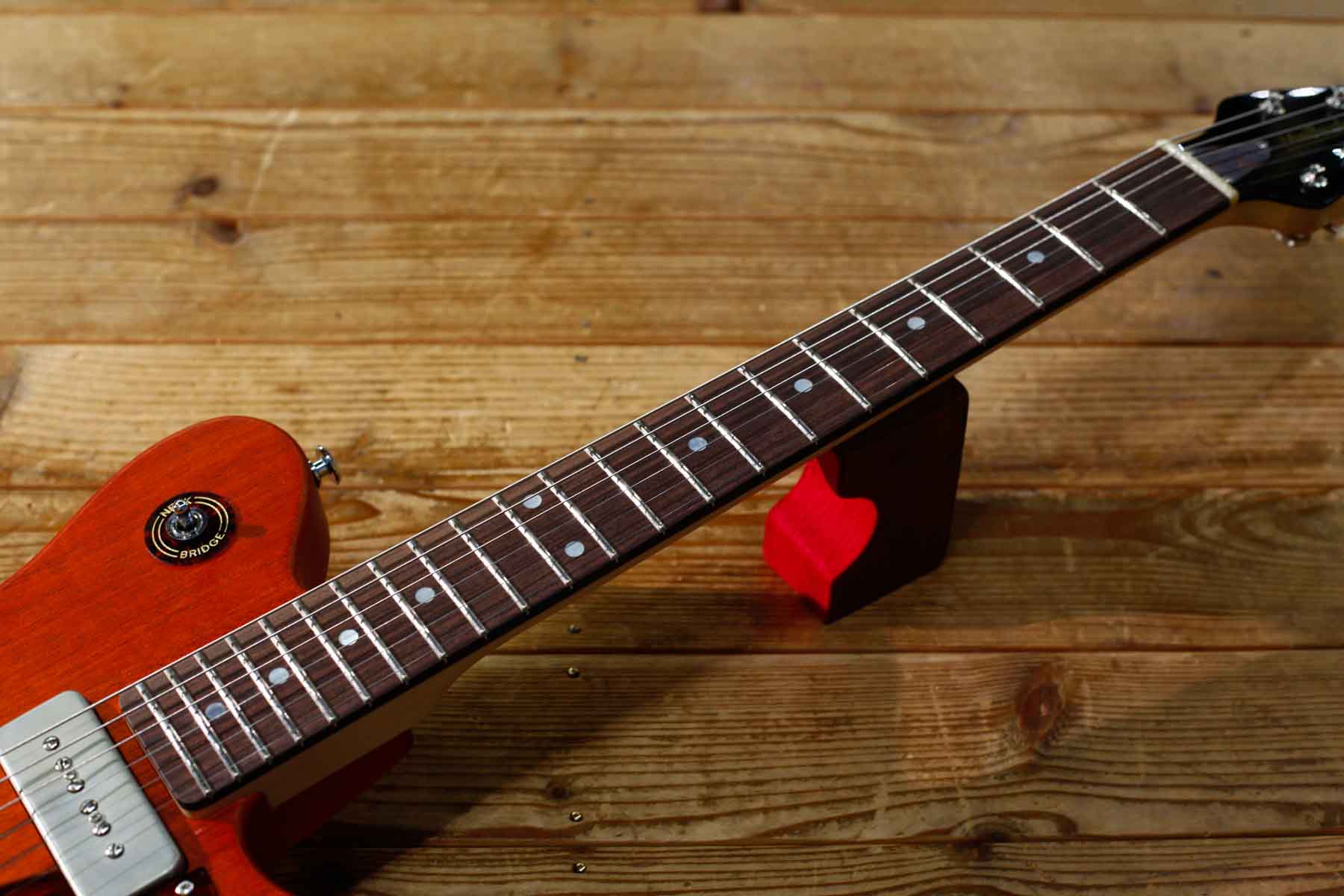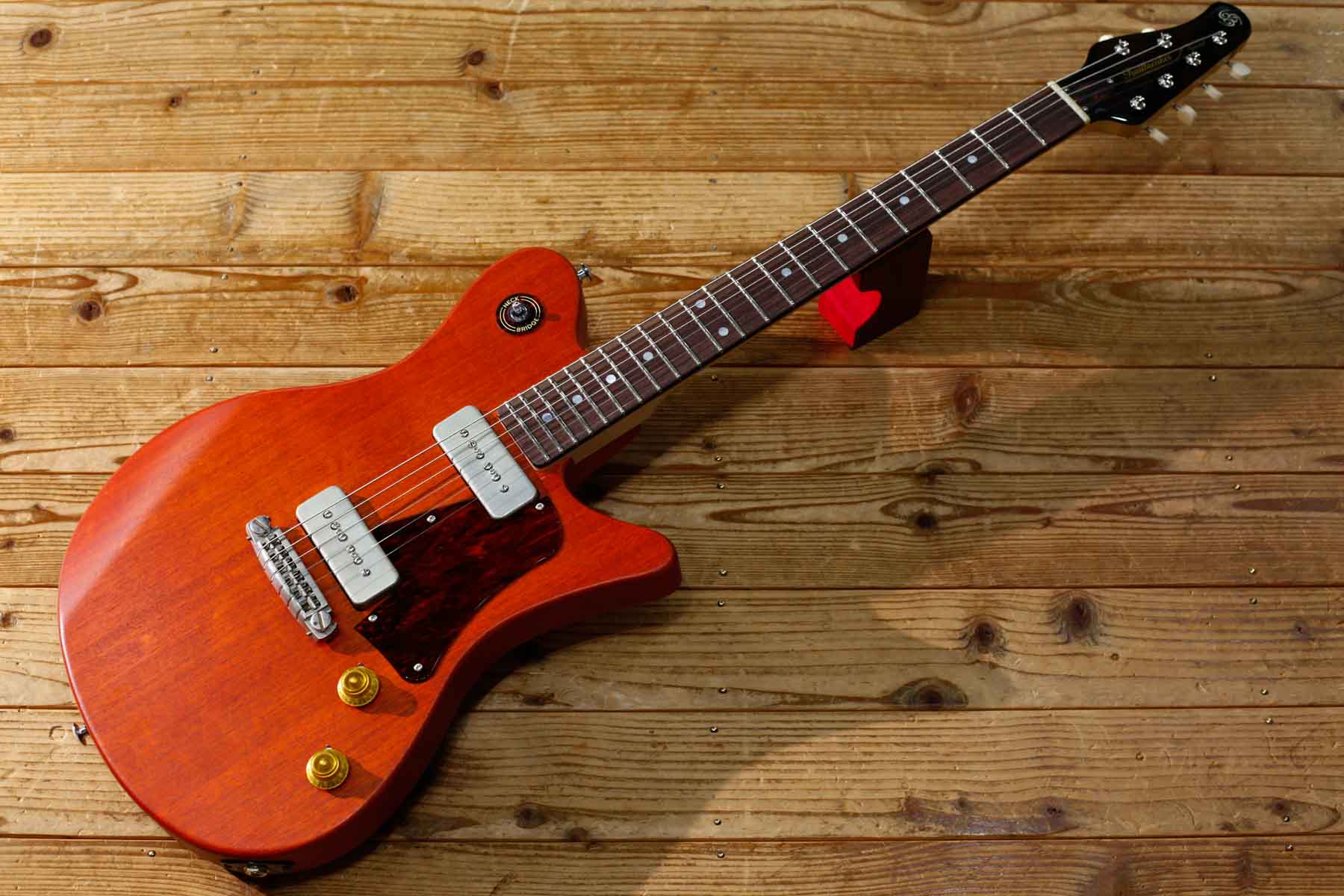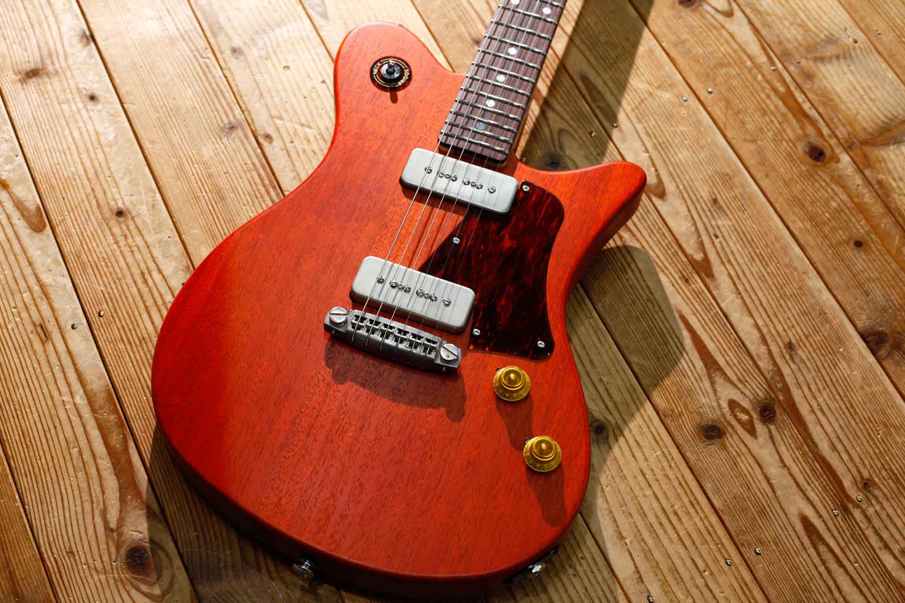 本機は、シンプルながらも深い表現力を秘めたP90ピックアップ × ラップアラウンドブリッジ × ミディアムスケールという構成で、プレイヤーのタッチをそのまま音に変える繊細なレスポンスを実現しています。