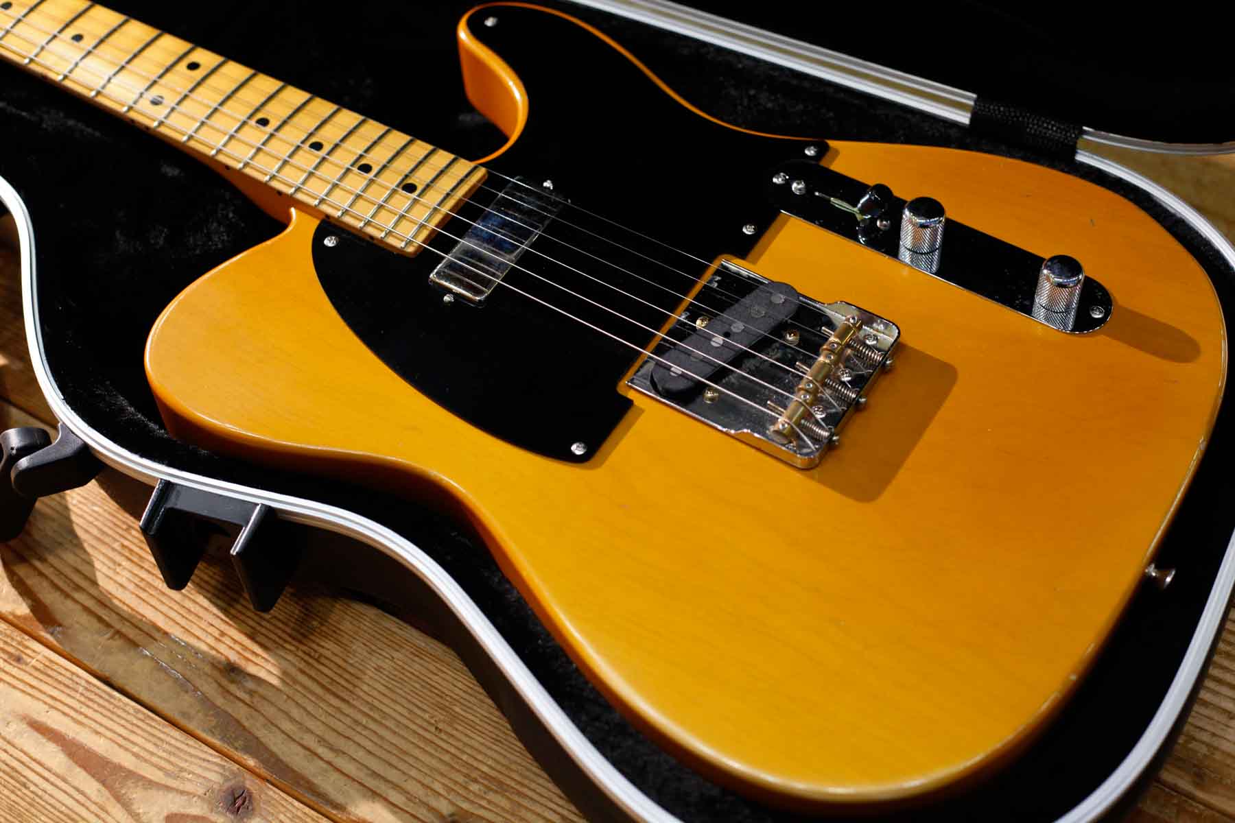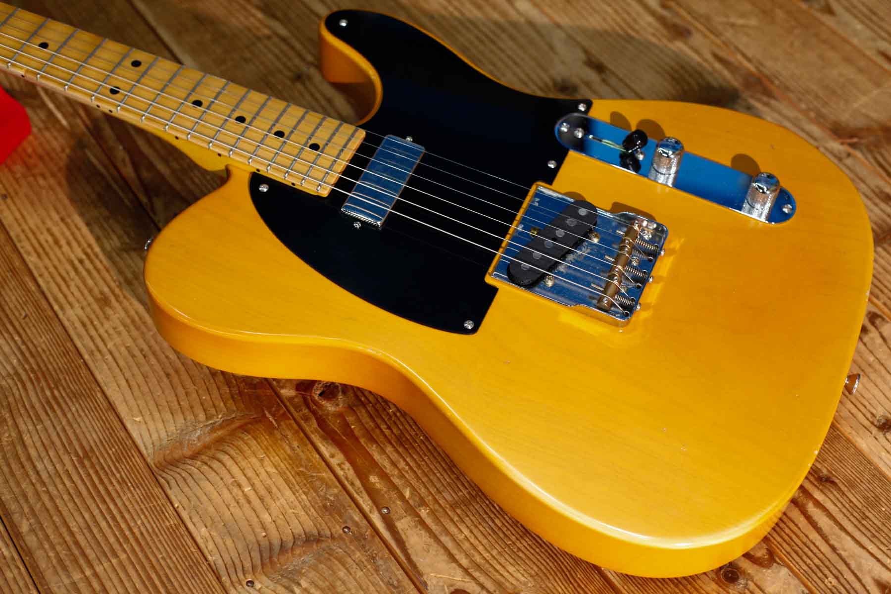 ブリッジピックアップはエナメルコーティングされたAWG42コイルワイヤーで巻かれた50sモデルをカリヤピックアップヘ別注。キレのある音色はブラスサドルのブリッジと共に組み合わせる事でトゥワンギーでありながらジャンルを問わずに音楽にフィットしています。