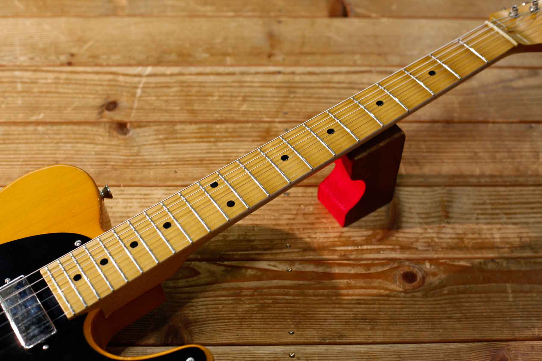 ネックシェイプは50’sタイプの太めのソフトVグリップ。貼りメイプル指板を採用することで適度なコンプレッションが生まれよりファットな音像に仕上がってます。