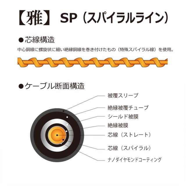●芯線構造:中心銅線に螺旋状に細い絶縁銅線を巻き付けたもの(特殊スパイラル線)を使用。