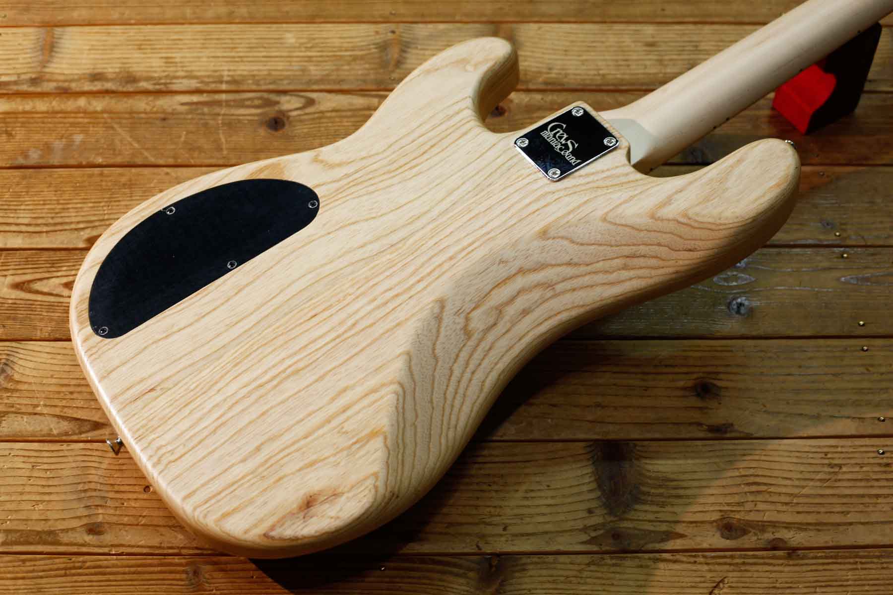 ハードウェアにはGotoh GB-30ペグ、ブリッジにはOMEGA Bass Bridgeを搭載。OMEGAブリッジの質量感が加わることで、サスティンや芯の太さもさらに際立ちます。