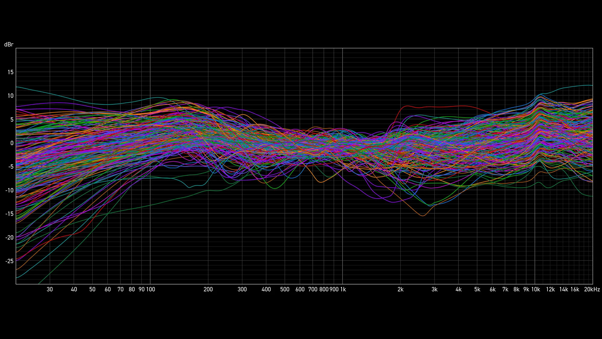 上のグラフは、IK が計測した200種類以上のヘッドフォンのレスポンス・カーブを示しています。 ARC ON•EAR なしでは、一貫したモニタリングがどれほど難しいかが分かるでしょう。