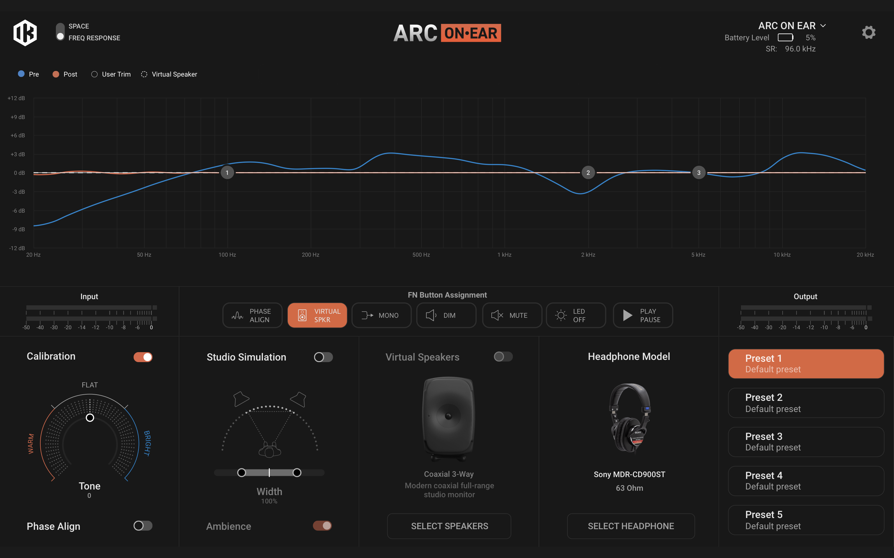 ARC ON・EAR : ヘッドフォン補正/バーチャル・モニタリング・システム特徴