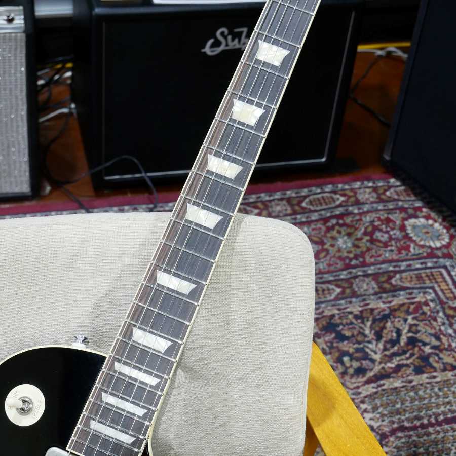ネックは57スタイルのややスッキリとしたシェイプを採用。厚みはありますがサイドをスリムに仕上げることで心地よいグリップとなっています。そのネックシェイプは音色にも大きく作用し、低域がスッキリしながらも中域は濃密です。フレットはミディアムジャンボサイズで明瞭なアタックを生み出します。ブラジリアンローズウッドの音楽的な響きを引き出し、クリアなサスティーンにも貢献しています。