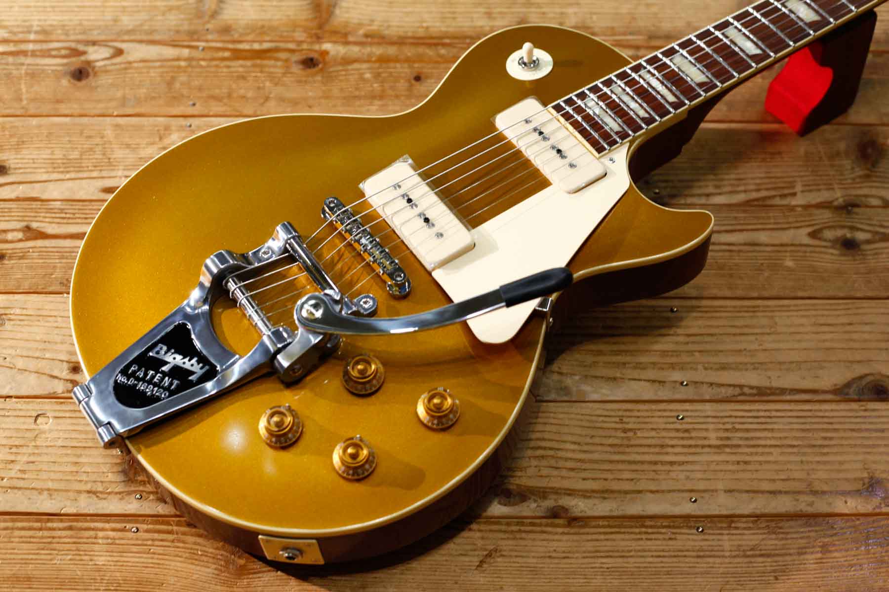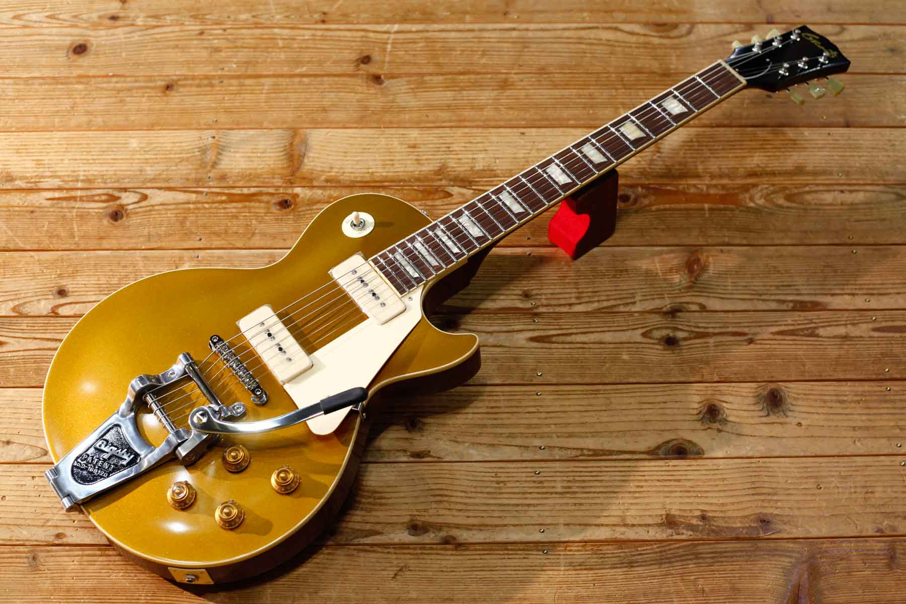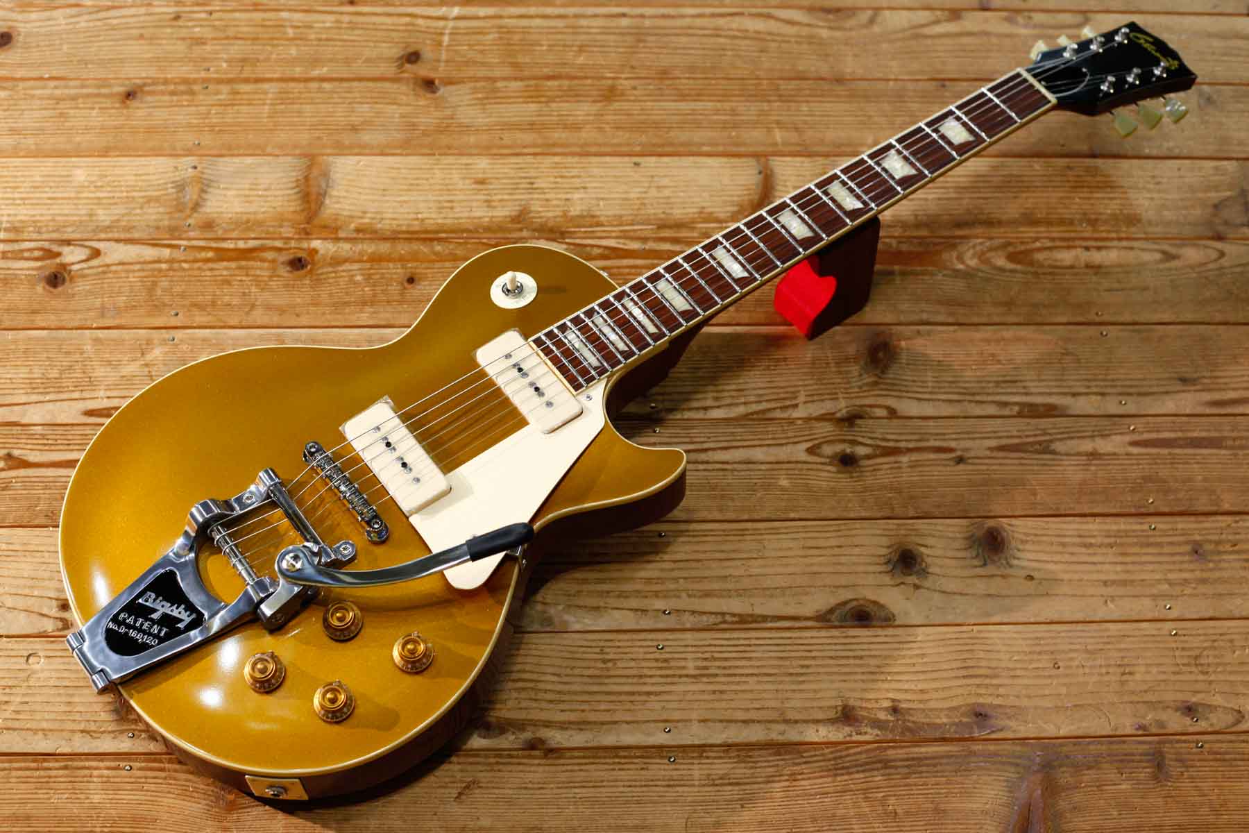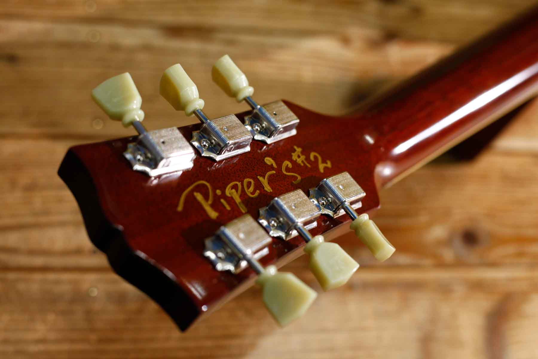 2基のソープバーピックアップを搭載した56年LPスタイルにビグスビーB7トレモロを搭載したPiper’sはDavid Gilmourのトーンに敬意を表して製作されました。(ギルモアのオリジナルは54年を改造したものでオークションで売却された)