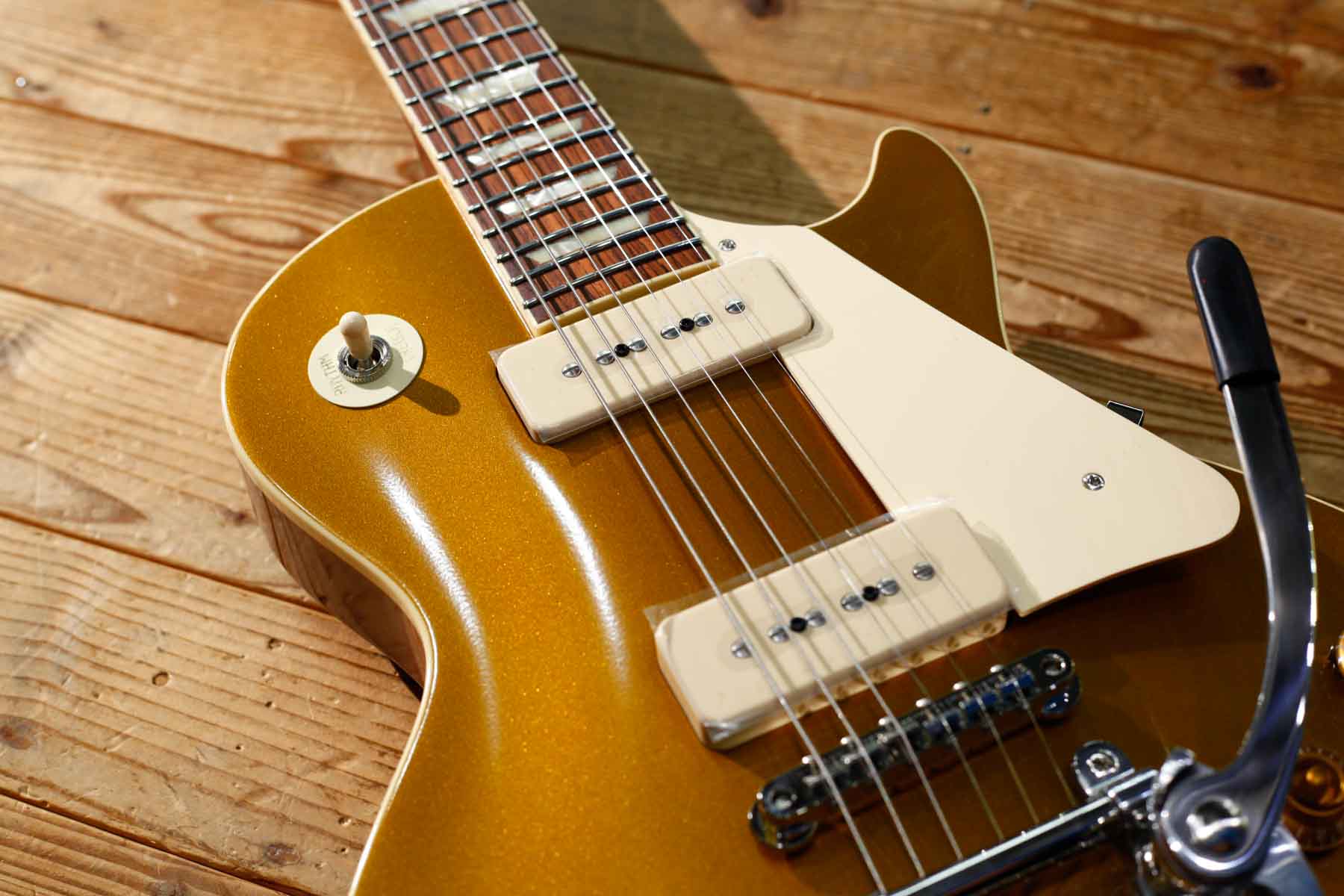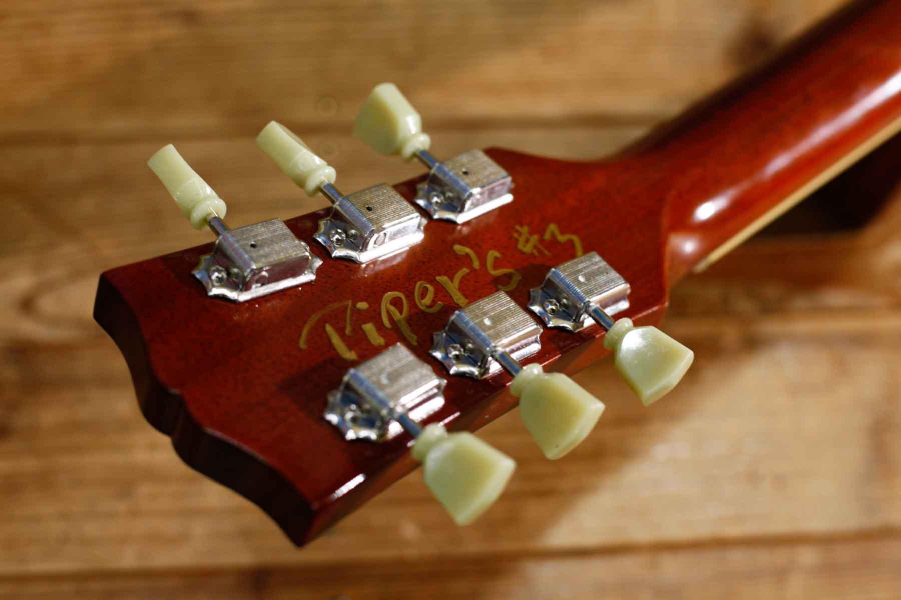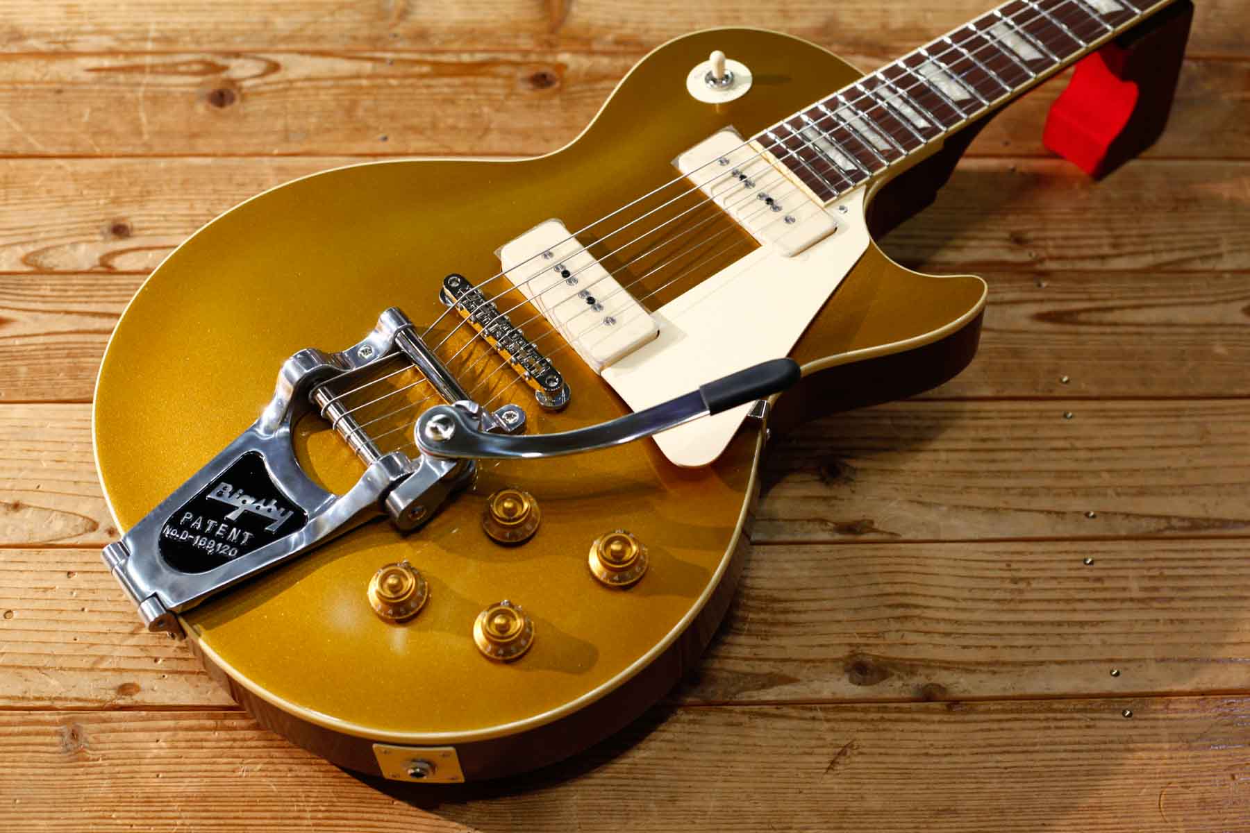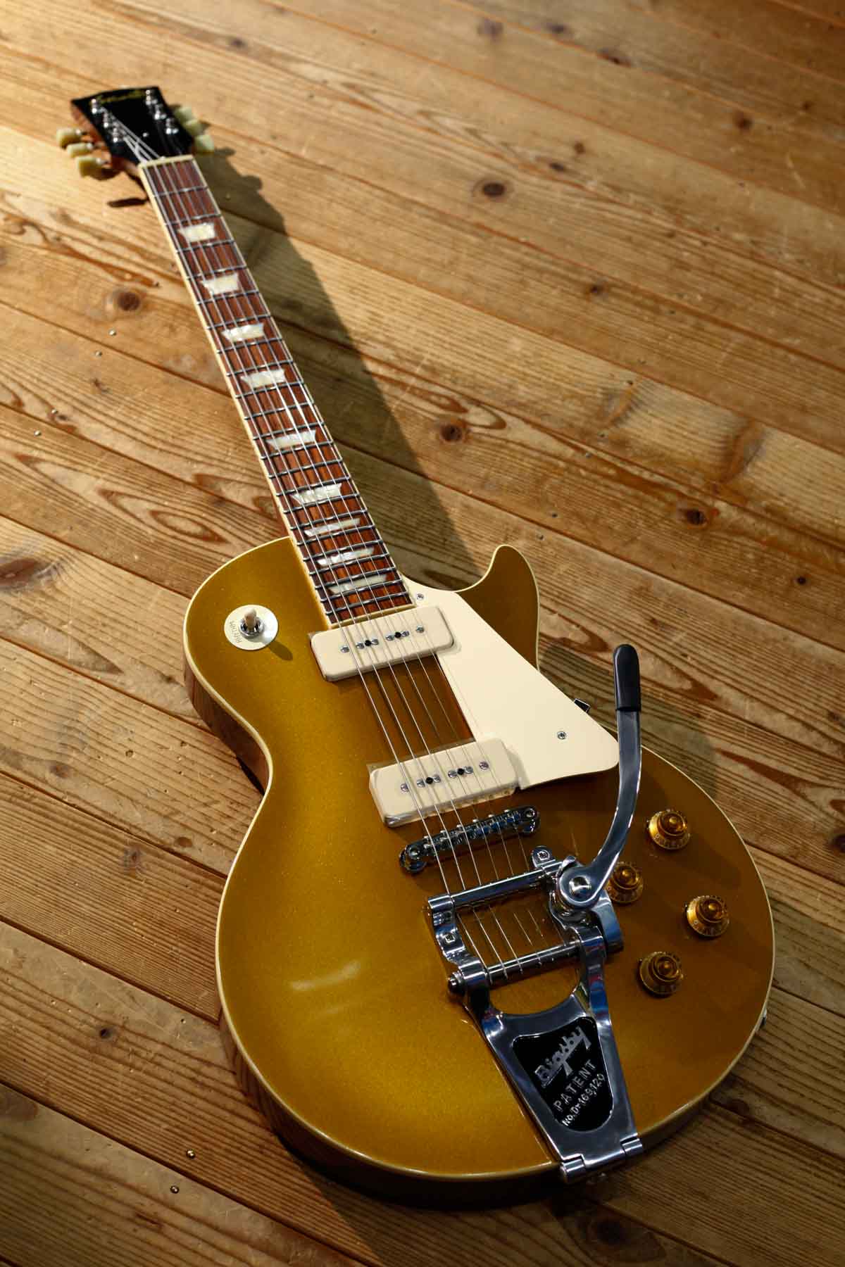 2基のソープバーピックアップを搭載した56年LPスタイルにビグスビーB7トレモロを搭載したPiper’sはDavid Gilmourのトーンに敬意を表して製作されました。(ギルモアのオリジナルは54年を改造したものでオークションで売却された)