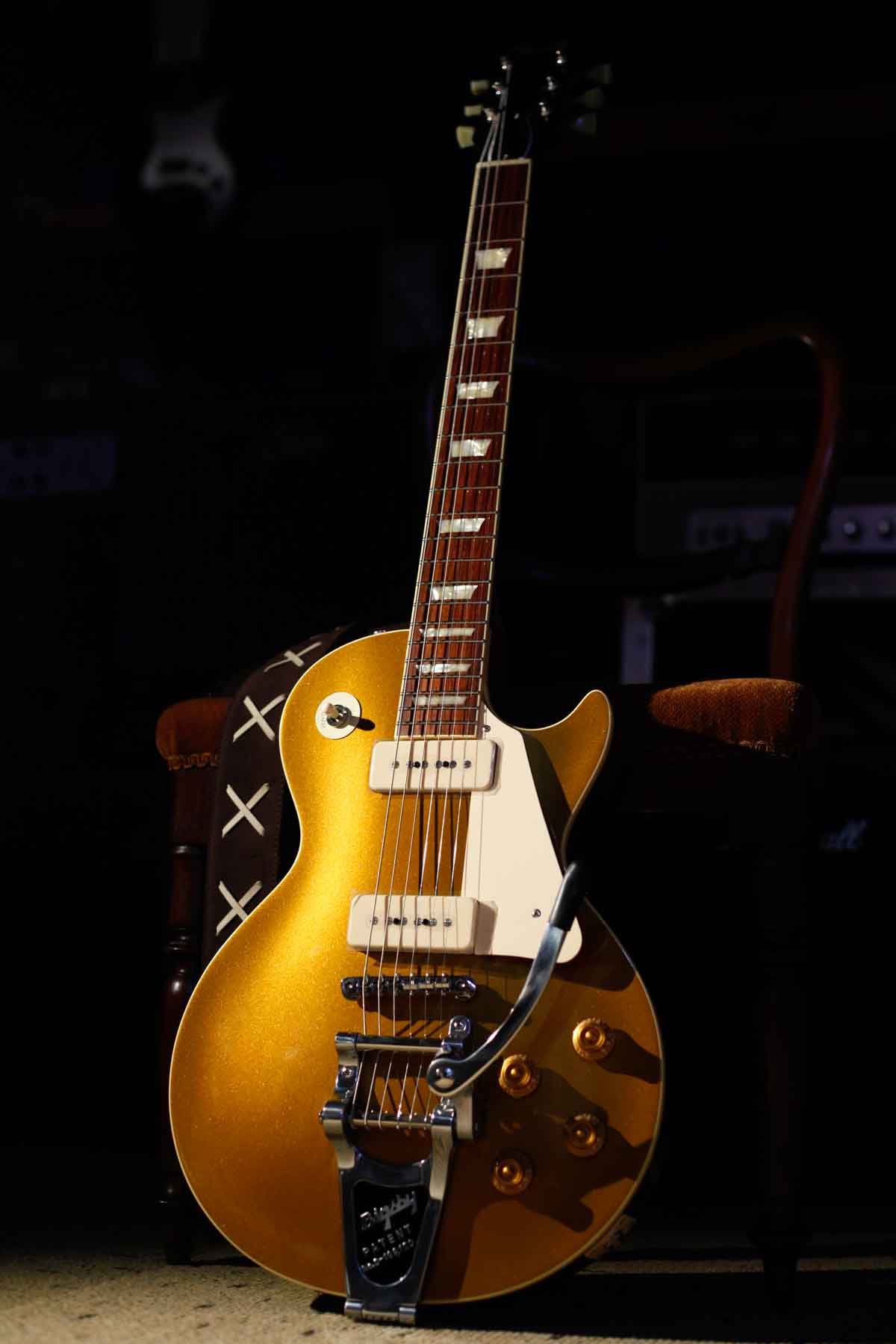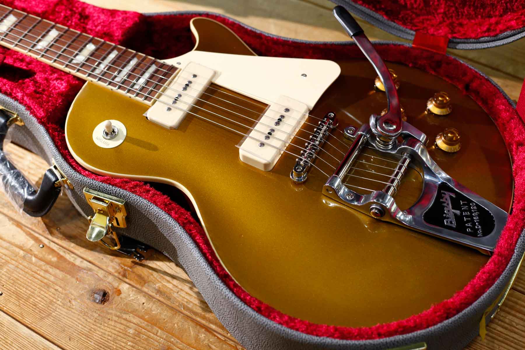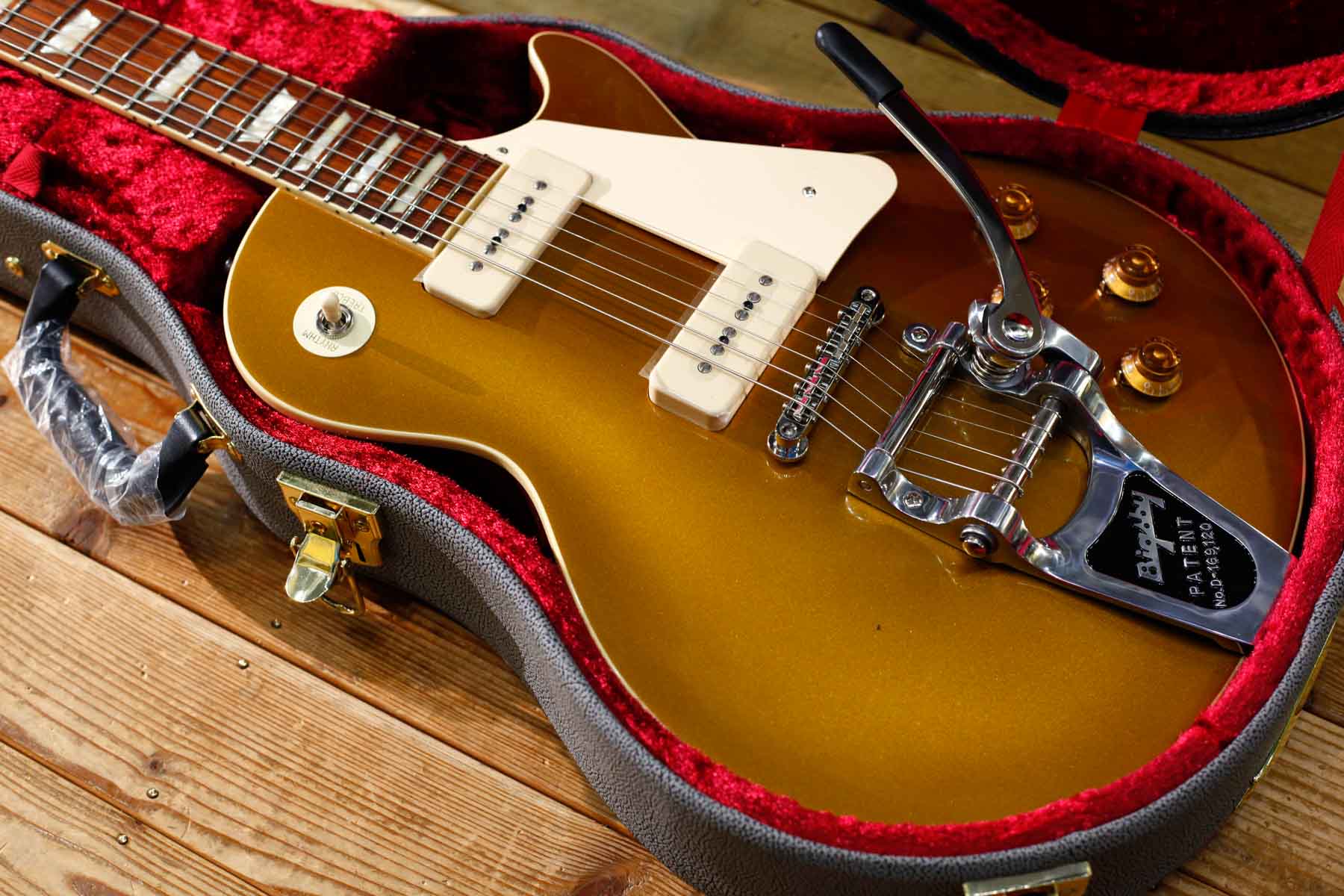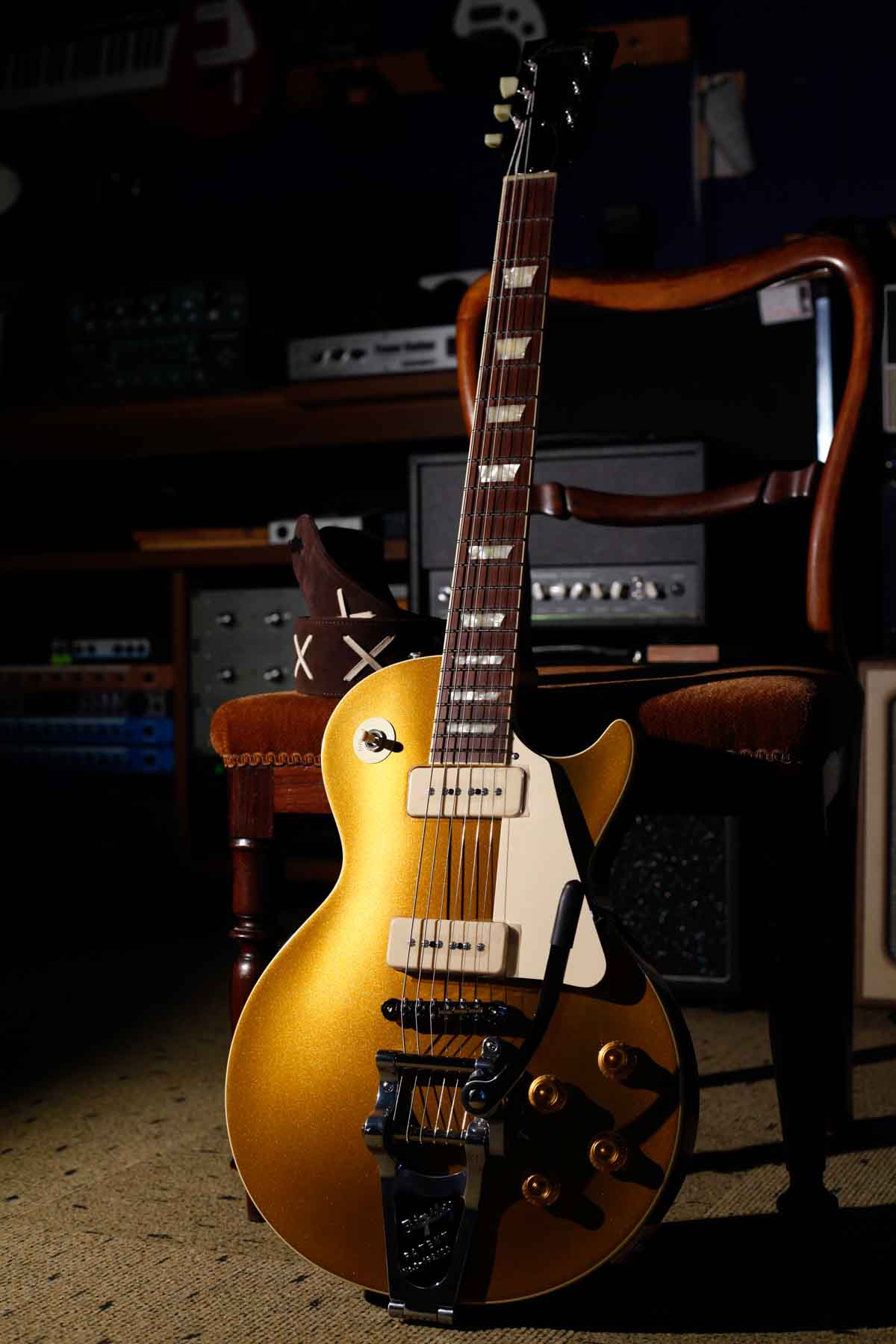 2基のソープバーピックアップを搭載した56年LPスタイルにビグスビーB7トレモロを搭載したPiper’sはDavid Gilmourのトーンに敬意を表して製作されました。(ギルモアのオリジナルは54年を改造したものでオークションで売却された)