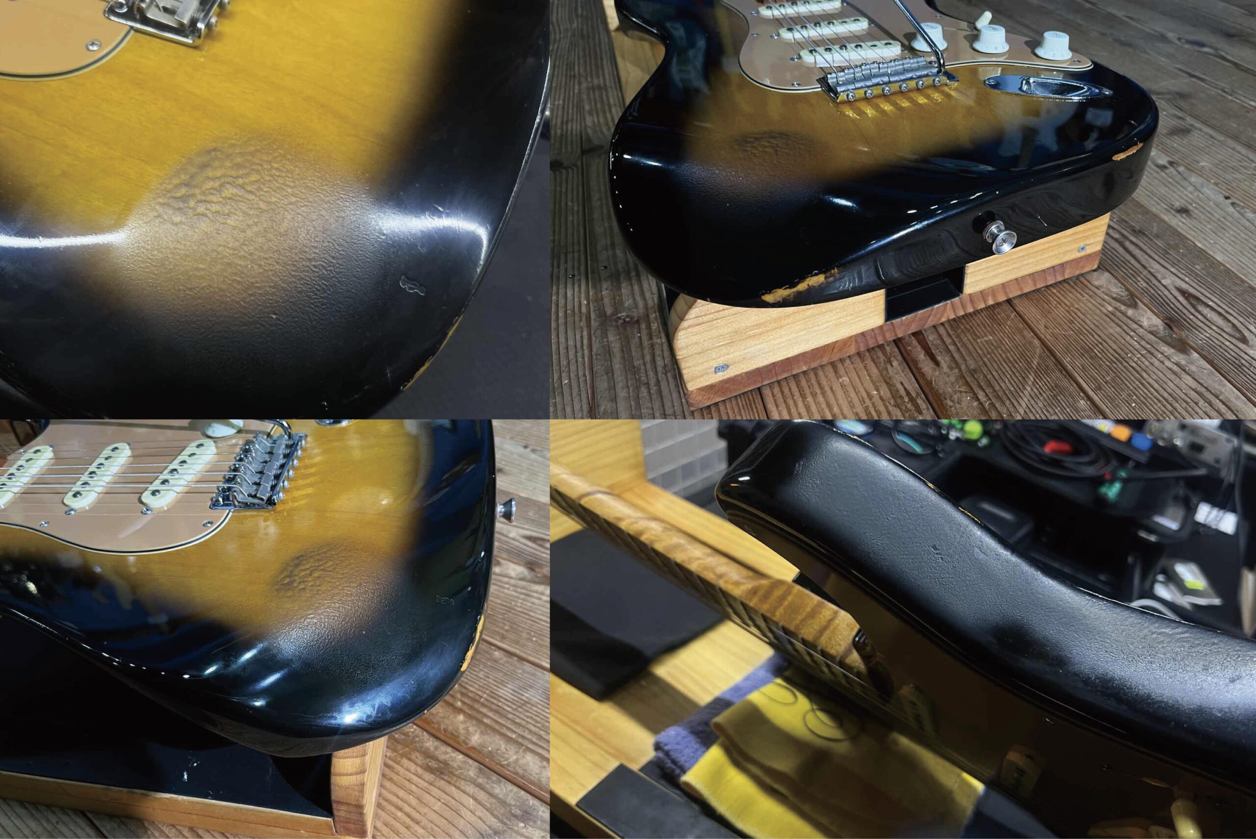 コンディションはプレイヤーズで各部の傷/塗装剥がれに加えてコンター部分のラッカー劣化も見られます。この劣化を除去するには塗装を剥がす必要があるのでレリック加工などを加えても良いかもしれません。それを除けば本当に素晴らしいギターです。エリックジョンソン的なサウンドにももちろん向いています。
