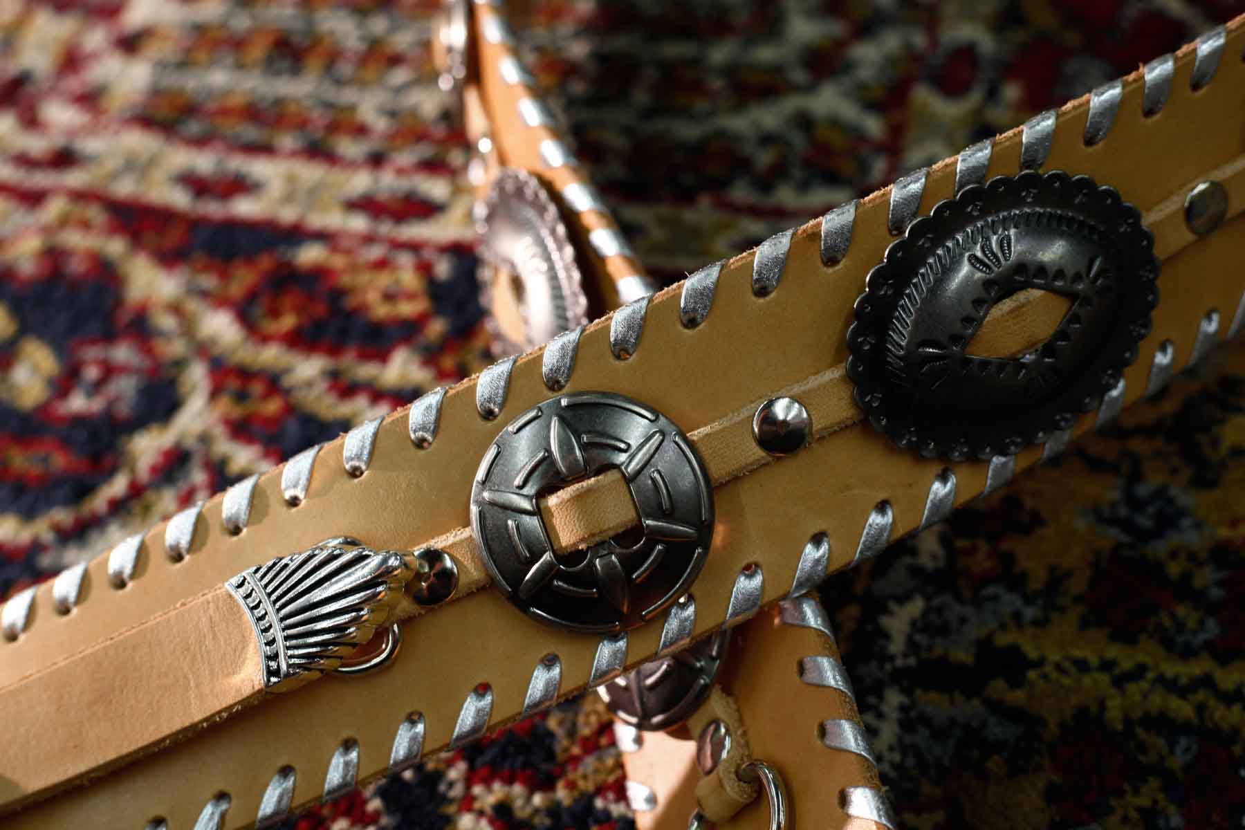 Dru Whitefeatherは、アメリカン・インディアンであるDru(ドゥルー)が製作する、ハンドメイドのギター・ストラップです。Muskegee渓谷の部族に生まれたDruは、アメリカン・インディアンの手工芸を伝承し、非常に質の高い製品を造り出しています。牛革にコンチョや蛇皮等で装飾した高い芸術性は多くの有名ミュージシャンも絶賛しています。使い込む程にプレイヤーに馴染んで、体の一部の様に感じられるでしょう。高崎晃氏を始め多くのミュージシャンが長年に渡り愛用しています。